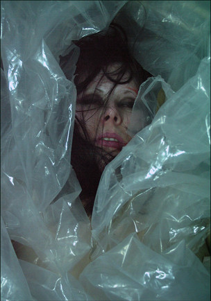 Very disturbing but very erotic, would love to see this as a sequence of shots, where the bag is inflated then sucked in around your face.