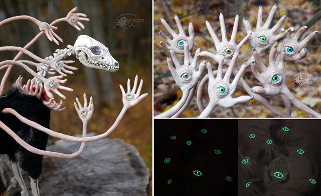 Ghost is completely handmade, original and ooak (one of a kind). Its head is sculpted with lots of care, time and tiny details, then casted for durability and painted with small brushes and lastly sealed. The eyes are glossed to give them a life like look. Its body is made of the softest fauxfur that Ive trimmed. Ghost is fully posable in legs, tail, neck, fingers and feet. Even all the arms around its head are fully posable. Ghost is a truly unique artdoll and I will never make another like it.