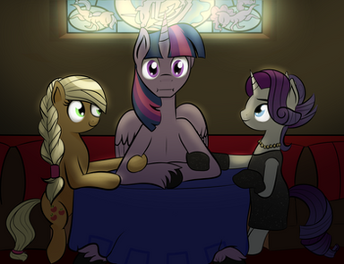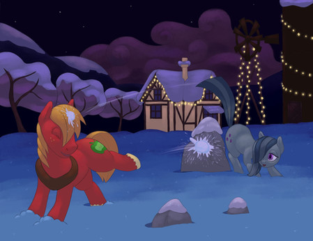 It's supposed to be a sequel for a "Snowballs" . Not sure if Applejack's expression is clear enought from contest, and definitly I somehow failed with the eye of Cloudy Quartz (eyes are my big strugle). I just hope the opposing emotions of this scene still can be read.I'm weak on English in general, but now it especially hard for me to describe what I wanted to show in this drawing. So hope it can speak for itself.