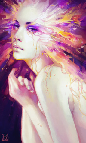 My goodness, this is stunning... your use of colour and texture is phenomenal and you've captured the mood and expression on her face with perfection. Β