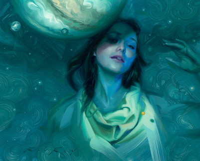 I absolutely love this, I love how the star dust trails off of her scarf.