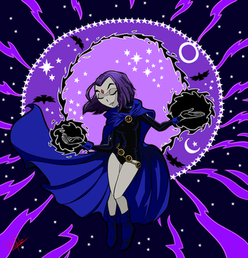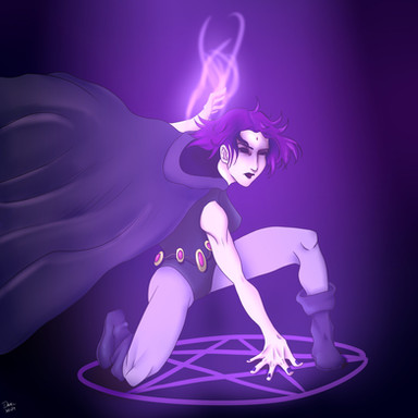 I realized I'd never drawn Raven before and decided to give her a go while on a train the other day. I liked the pose I managed to give her in the doodle, so about five hours later in FireAlpaca we now have this.I dunno what she's casting exactly, or why this PARTICULAR spell takes candles and pentagrams, but let's just assume she's doing something big scale for the sake of good and not summoning her father or anything like that.