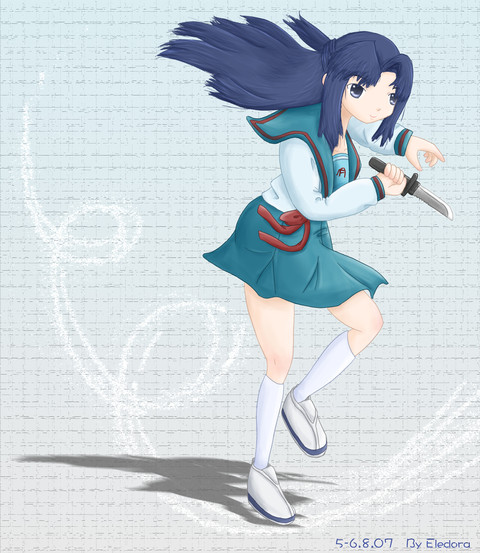 Awesome fluid and dynamic pose, I love it! *imagines her fightin' alongside Walter from Hellsing* Oooooo that'd be a nice duo! Great work Eshe!