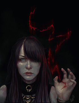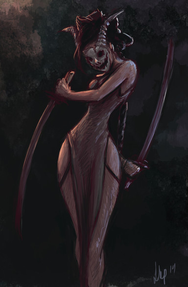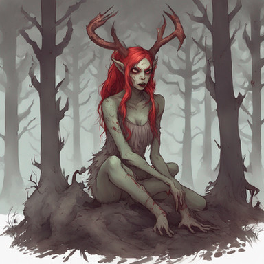 The ashen skin, elk antlers, tall gait and emaciated look. Good art.