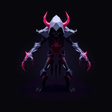#characterdesign #conceptart #antlered #batwinged #cosmichorror #creaturedesign #darkart #darkfantasy #demonart #devilart #fantasycreature #gamecharacter #lowpoly #monsterart #sharpedges #wingeddemon #yelloweyes #pureblack #occultart #blackvoid #bossdesign #symmetricaldesign #villaindesign #redaccent #minimalistbackground #scarletclaws #tealwings #entityart #angulardesign #clawedcreature