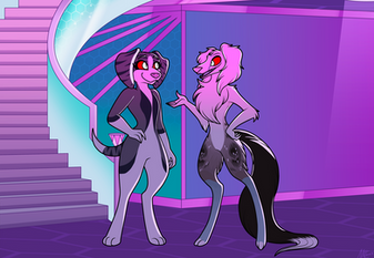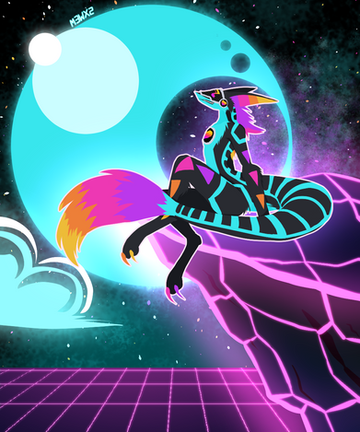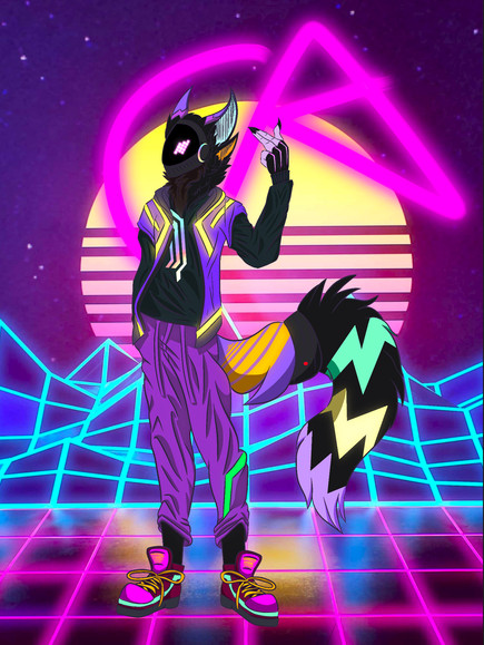 Completed digital piece, with a synthwave 80's vibe, featuring my okapi boy, Vinny!First drawn piece I've officially done under SecapawsStudio work hours c: