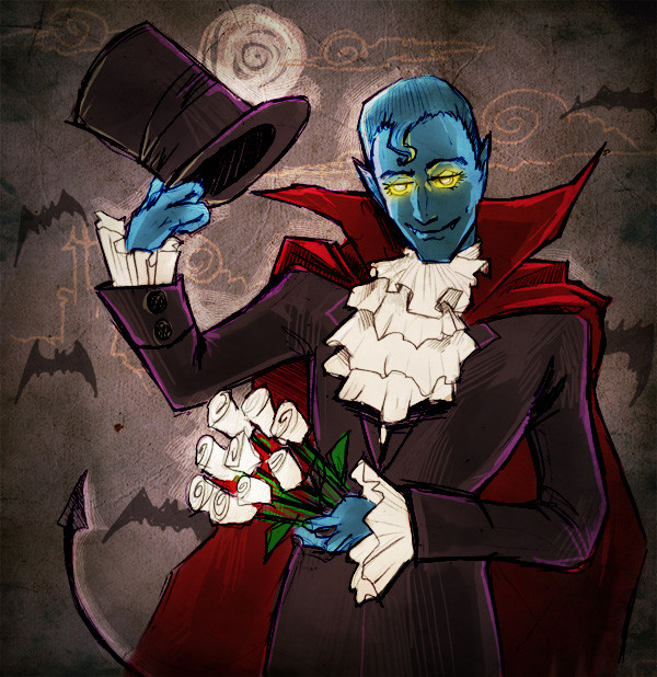 That's really cool, I like how lanky he looks, and the slight glow in the eyes. The statue in back gives a nice effect, too.