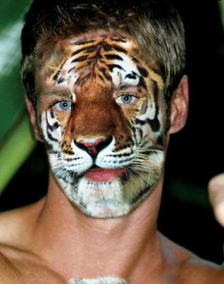 Tiger tiger burning bright, look who I just caught under the spotlight.My friend Mark sent me a couple of photos which I decided to use one (or a snippet rather) to morph him into a sexy tiger. Doesn't he look tasty? Mrowl. *licks lips*