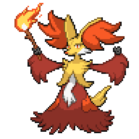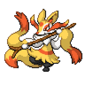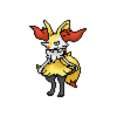 A sprite fusion between Braixen and Mew.The tail looks kindof like a paintbrush!