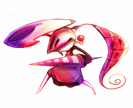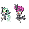 A sprite fusion between Escavalier and Meloetta. I wanted to do something with Meloetta's hair and Escavilier's shell, so I made the hair a bit longer and filled in the rest myself. The knight of serenade?fav.me/d6wvdg3 drawn by Sprinkling-Salt .