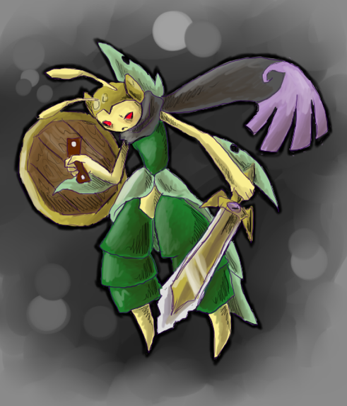 A redrawn version of: LeavlashThis was one of my old contest entries for a drawing of a sprite fusion you made. This was a drawing Leavlash. This was made about a year ago, with 31 digital drawings in between. I think I've improved!