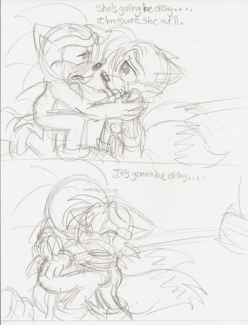 Before I even look at the description I get a 'vib' from the picture itself and the story it might tell. I love how you've captured Sonic's 'Ah-hell-I'm-fine' expression, wheras Sal is like; 'Are-you-really?'