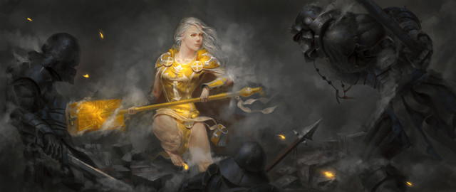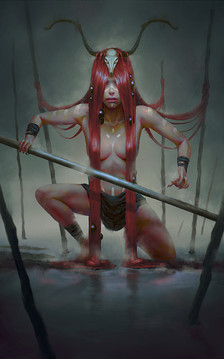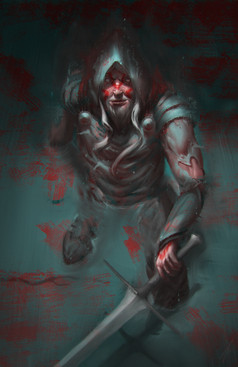 His eyesight dwindled, his senses were numbing. All he could feel was the cold embrace of the palace halls and hear distance chatter in the far off distance. A voice started to whisper. It was rough, like a rusty sword dragged along a cobbledstone road. He looked again and before him stood the shape of a man yet nothing about the figure was humanlike. The shape didn't speak but instead slowly started moving. Fear of knowing what was coming besieged him but the overwhelming feeling of yet accomplished feats urged the King to draw his sword. With newfound strength and firm eyes the King spoke, "Not yet...".Progress gif of the image: