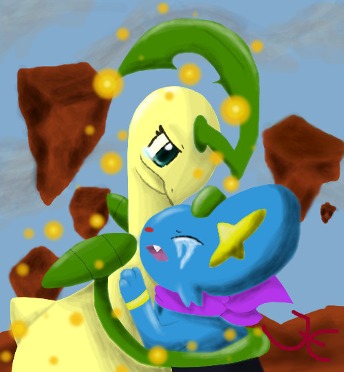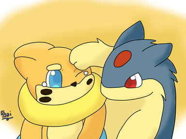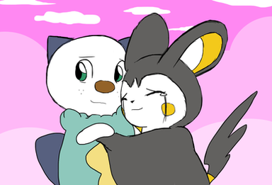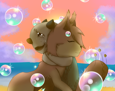 I like this picture. Floofyness is implied since it's Espeon + Floatzel hugging. xD I can tell you spent time on the background: the coloring of the whole thing and the overall design is excellent. And the expressions of both clearly show their feelings. Nice work!