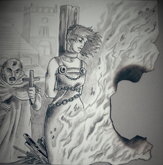 Of course, there is no way that the people are actually going to be able to burn her. And we'll certainly not go into how they managed to get her tied to that stake.
