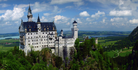 Neuschwanstein Castle (German: Schloss Neuschwanstein) is a nineteenth-century Romanesque Revival palace on a rugged hill above the village of Hohenschwangau near Füssen in southwest Bavaria, Germany. The palace was commissioned by Ludwig II of Bavaria as a retreat and as a homage to Richard Wagner. Ludwig paid for the palace out of his personal fortune and by means of extensive borrowing, rather than Bavarian public funds.