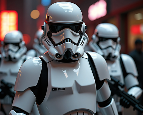 #starwars #cosplay #military #empire #anakinskywalker #armor #clones #commandos #darthvader #deathstar #neworder #obiwan #sith #stormtroopers #militarygrade #firstorder #blasterrifles #gifshop #aigenerated #shopessence