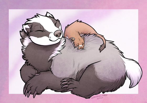The theme of the day was cuddle time ♥ I decided to represent furet and cat (because furet are sooooo cool to draw).