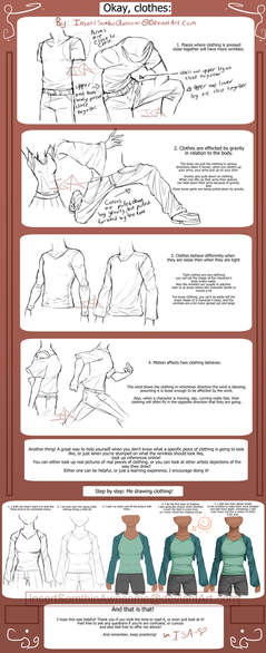 Dużo daje rysowanie ze zdjęć. Serio. Fakt, że ten tutorial zrobiłam z pamięci, ale podejrzewam, że będą takie, które będą robione z refów by pokazać jak najdokładniej rzeczy, których ja sama nie pamiętam xD" Np nie rysuje garniturów zbyt często jak i nie noszę ich i nie widzę ich na co dzień. Nie napatrzyłam się na nie więc i nie pamiętam dokładnie gdzie się marszczą. Baaardzo często zdarza mi się, że gdy idę pieszo to oglądam ubrania i jak się układając wiedząc, że im więcej takich obrazów przeanalizuje w swojej głowie tym więcej w niej zostanie później. I tak jest ze wszystkim! Z anatomią, z kolorami, z cieniowaniem. Z tym, że dla mnie największy problem sprawiało obserwowanie kolorów i gry światła i cienia. Dlatego nadrabiałam niewiedzę tutorialami z dA xD" A potem już sama zaczęłam dostrzegać nowe rzeczy bo nauczyłam się na co zwracać uwagę. I tak też będę traktować tą serię tutków... Bo o ubraniu i tłumaczeniu każdej zagwostki można książkę narysować i opublikować XD"