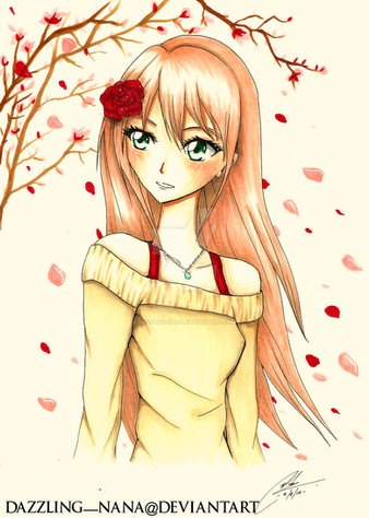 I wish it was spring over here. So I’ve done this springy with petals but with more autumny colours (since it’s autumn at the moment)Yeah so it’s a weird mix. And I got lazy and only did the top bit of the picture.