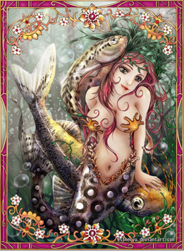 Nice detail. The robot mermaid is also reminiscent of Leiji Matsumoto's artwork to me. His manga/anime were usually about mechanical people and featured ladies with long flowing hair and eyelashes.