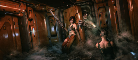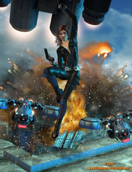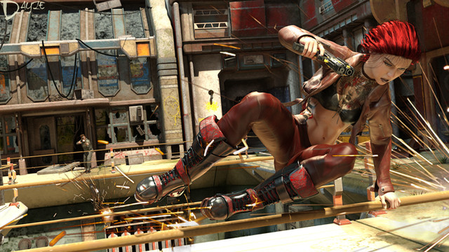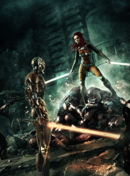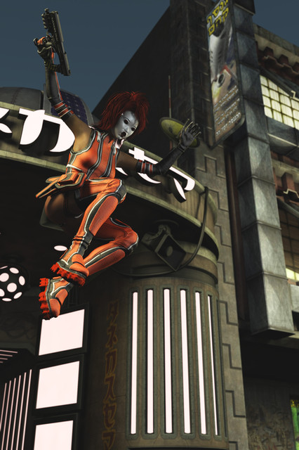 More cityscapes I'm afraid, but this time with a little action in it. Actually built quite a few of the buildings myself for this one, supplemented with Stonemason's Greeble pack and a bit of Dystopia (Both a Daz), all with my own textures. Character is GND 2 with costume by Xurge3d. Rendered in multiple passes in Cinema4d with Ambient Occlusion and a single light source (the sun)...composited and painted in Photoshop.Thanks for taking a look, and for all the wonderful comments I've been getting lately...they're mucvh appreciated.
