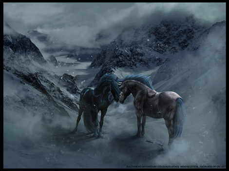 Gray horse by Sooty-Bunnie , brown horse by SalsolaStock and background by Sammykaye1sStamps .