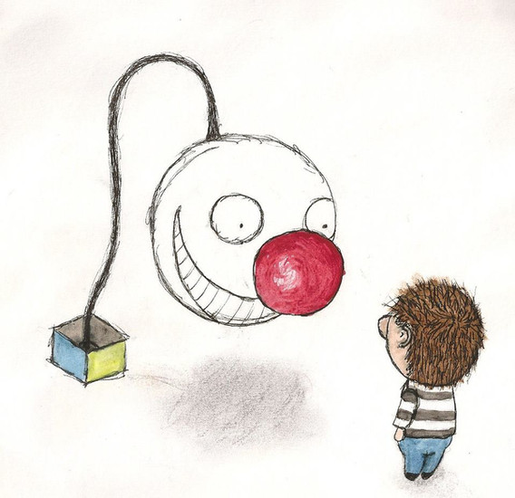 I think the monster has a somewhat Tim Burton-esque look to it with with that curly ends on the smile and striped tongue. I love surreal pieces like this.