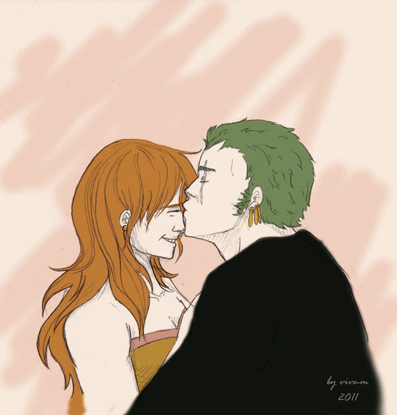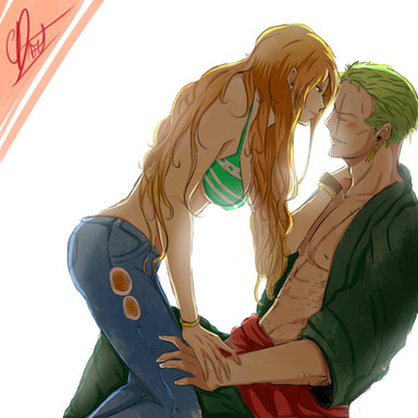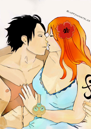 I drew Luffy and Nami from the manga One Piece. I really like this pairing, and I think it's more realistic than Luffy/Hancock. But I don't want to launch an useless debate ; it's just a question of taste.Made with my graphics tablet and Photoshop CS3.