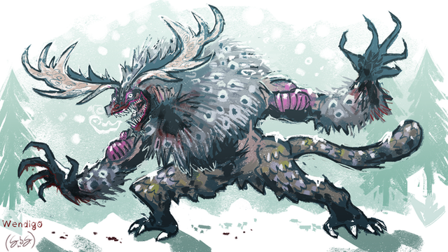 Second wendigo commission for M.She asked for a companion piece to this one and I was more than happy to do it - always a pleasure to draw these guys~