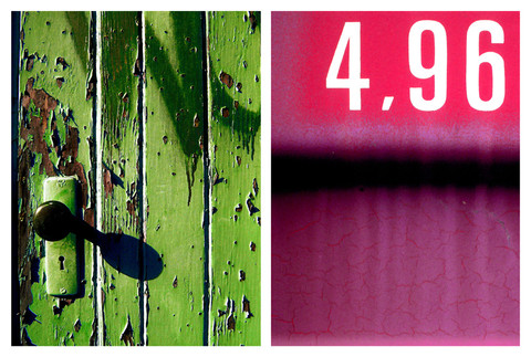 The side of a truck-type-thing.Yes, the photo is noisy. I stupidly forgot to check the ISO on my camera when I went away, and it was up at 1600 because the last time I'd used it was somewhere dark. I didn't realise I'd left it up so high until 200 shots later. I'm still angry at myself. Most of the shots were okay, but ones with a lot of red-orange aren't very clean. I'm putting this up anyway, I quite like the minimalist composition, the stencilling and the colour.