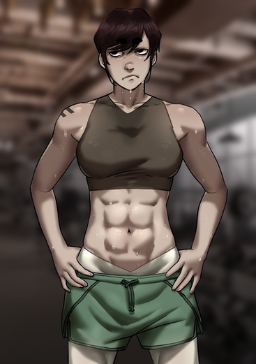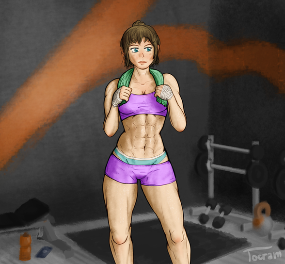 #abs #bren #brownhair #solana #sweat #nervan #blackhair #digitalartwork #digitaldrawing #digitalillustration #muscular #muscularfemale #tan_skin #workout_clothes #neuronactivation #mediumsupport #mediumsupportmeme