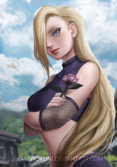 waw, shi is so sexy and beauty. I love Ino, am her fan. She is pretty, strong, feminine. Can I ask something? You can do and Sakura? with long hair to the bottom, sexy. Please? I also have a deviantART account for some time, but I do not know how to use it. To Be dressed in dark blue a bra similar to Ino's bra, but not all buttons and shorts, all dark blue, and have red eyes.