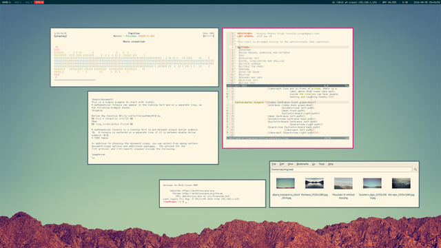 Thanks. Sure, the music player is mpd with ncmpcpp as the client and the file manager is Ranger.