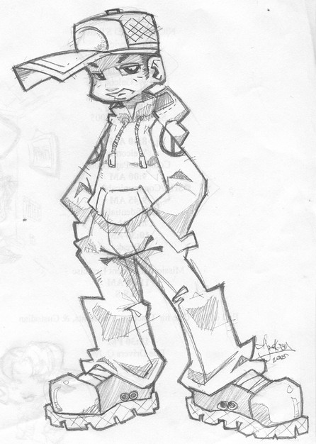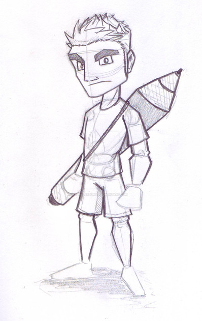 I like the details on your pants and I like the way you drew the pencil and the hands. You should colour this, someday!
