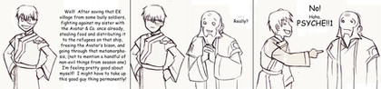 Ovid shows us she is not a total prick by bringing Avery back to Johto, despite the risk that if she is found out they would try and kill her. And Avery shows he has... some... microscopic form of a backbone. I hope you now have more of an insight into Ovid and Avey's relationship. :3