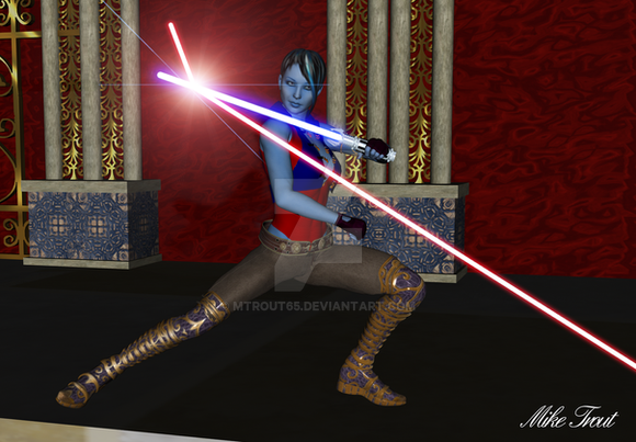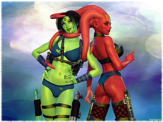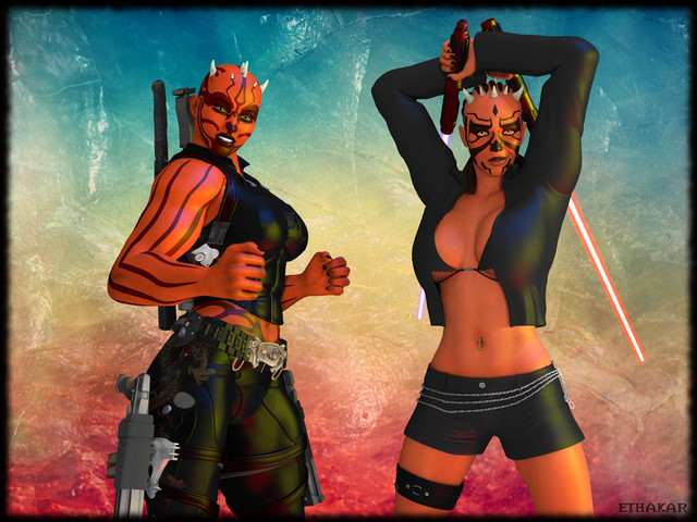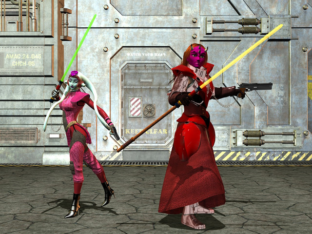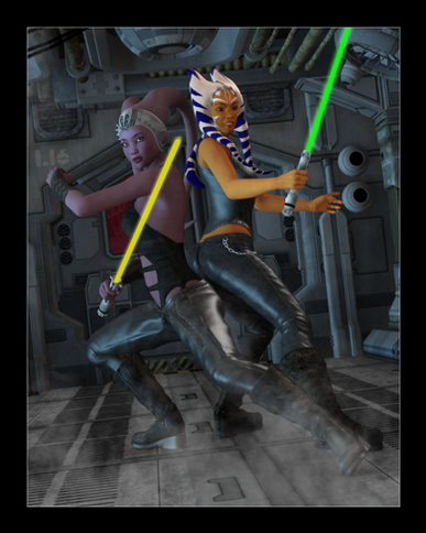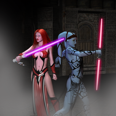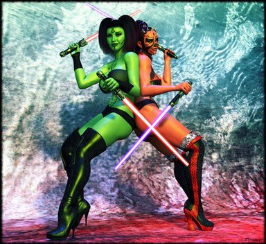 How it could look like, when Vette releases one of her many 'Boom!' comments during battle -> she always brings a smile on Daula's face.Rendered in Poser, postworked in Gimp.