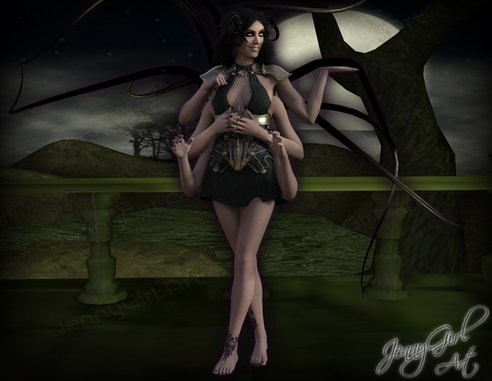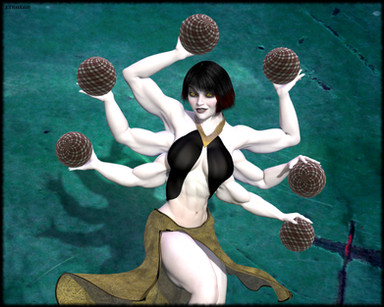 She has such a sexy toned butt & legs!! Β This pose would be awesome to see animated. Her 6 arms are just divine!!