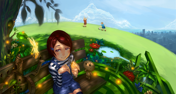 Wow. This is really great and imaginative. What's on her back. I looks like a large clock or something. Did she find it or already have it with her? The pic inspires all kinds of fun questions that ramble about in the mind. Definite