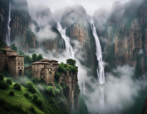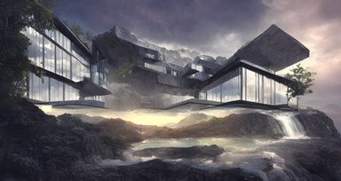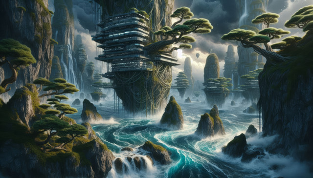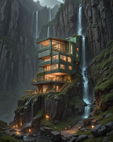 #ai #architecture #building #conceptart #fantasy #home #meditate #scifiart #stormy #waterfalls #machinelearning #aiart #machineart #dreamscape #fantasyart #solitude