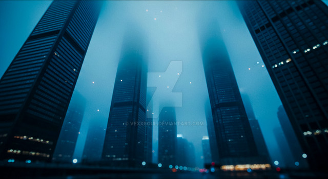 it's a group of buildings in downtown los angeles. i took the shot on a really rainy, gloomy day and then made it even more dark and depressing in photoshop.