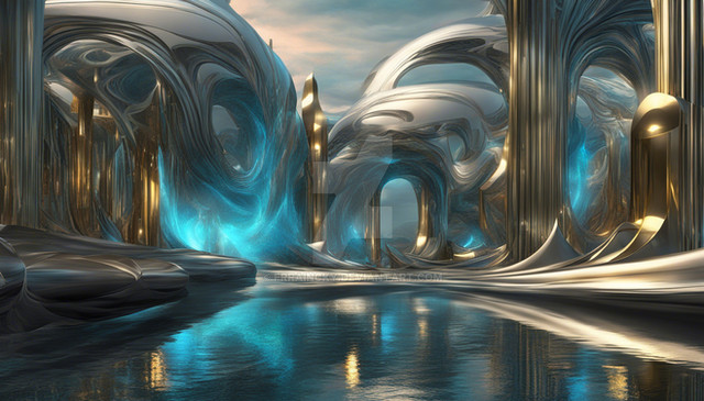 #ai #digitalart #glittering #scifi #steampunk #turquoise #underground #waterfall #aiart #conceptart #digitalpainting #dystopianfuture #steampunkfantasy