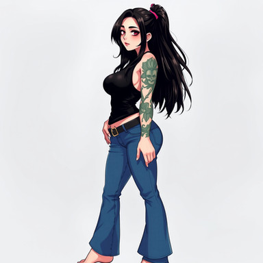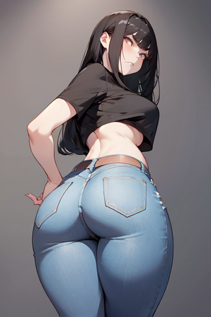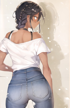 #digitalart #ass #backview #blackhair #brownskin #butt #buttgrab #frombehind #jeans #shorthair #simplebackground #sleeveless #tanktop #1girl
