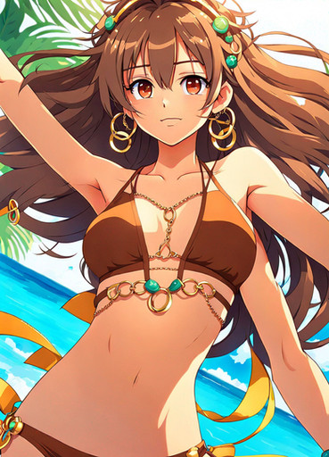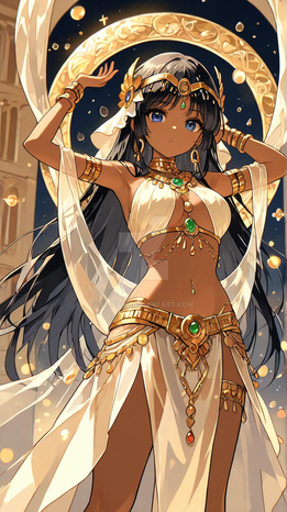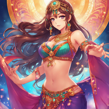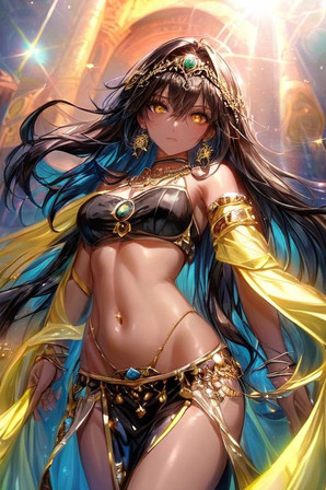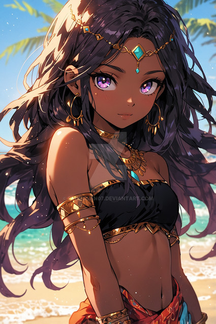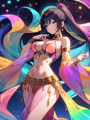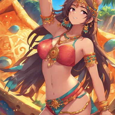 #anime #digitalart #animegirl #blue_eyes #cleavage #colorful #loincloth #long_hair #midriff #ponytail #1girl #belly_button #dancer_girl #looking_to_the_side