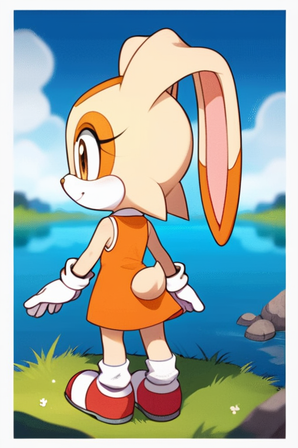 #sonicthehedgehog #bunny #rabbit #fanart #digitalart #anthropomorphic #cartoon #child #cute #dress #furry #gloves #grass #rocks #shoes #sleeveless #tail #wholesome #young #1girl #bunny_girl #cream_the_rabbit #orange_eyes #floppy_ears #back_view #looking_back_at_viewer