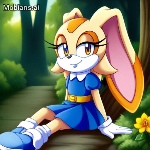 #sonicthehedgehog #rabbit #bunny #digitalart #fanart #anthropomorphic #cartoon #child #cute #dress #forest #furry #gloves #log #shoes #sitting #sleeveless #wholesome #young #1girl #bunny_girl #cream_the_rabbit #orange_eyes #looking_at_viewer #floppy_ears
