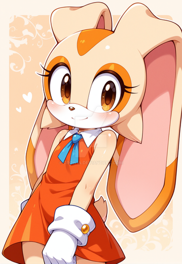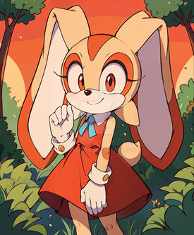 #sonicthehedgehog #bunny #rabbit #digitalart #fanart #anthropomorphic #cartoon #child #cute #dress #forest #furry #gloves #log #shoes #sitting #sleeveless #wholesome #young #1girl #bunny_girl #cream_the_rabbit #orange_eyes #looking_at_viewer #floppy_ears