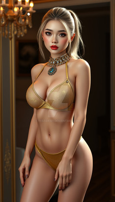 #beauty #choker #cleavage #earrings #lipstick #long_hair #midriff #panties #underwear #brown_eyes #wide_hips #looking_at_viewer #dark_hair #belly_button #off_shoulder #one_girl #slim_waist #realistic_ai
