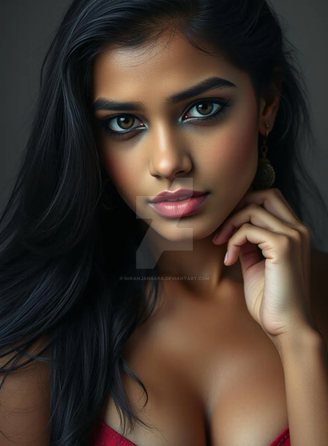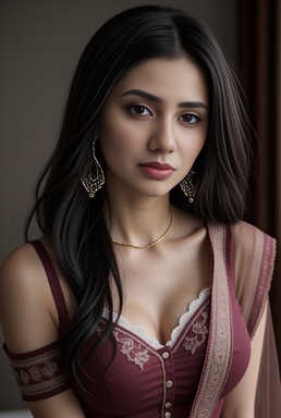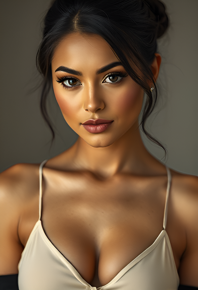 #beauty #cleavage #closeup #earrings #lipstick #long_hair #brown_eyes #looking_at_viewer #dark_hair #off_shoulder #one_girl #blurry_background #realistic_ai