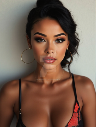 #beauty #cleavage #earrings #lipstick #long_hair #brown_eyes #looking_at_viewer #dark_hair #off_shoulder #one_girl #blurry_background #realistic_ai
